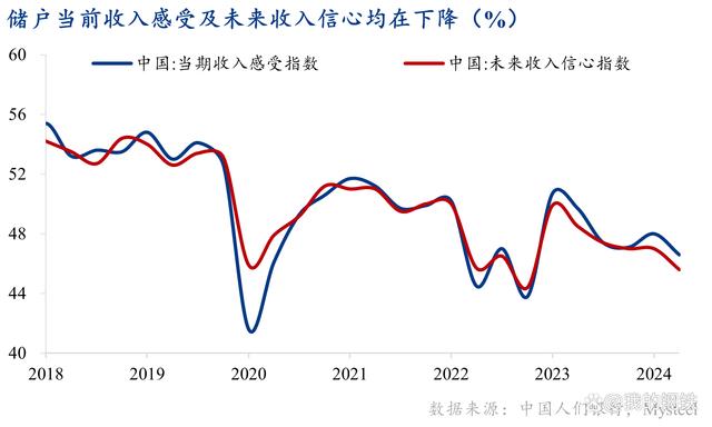 居民消費疲乏,且表現(xiàn)為追求性價比,導致企業(yè)生產(chǎn)供給偏多,競爭激烈下價格注定承壓。企業(yè)利潤變薄,居民工資收入有下行壓力,而且企業(yè)繼續(xù)投資的意愿和能力均下降,工資收入預期也轉弱。央行調查顯示,今年二季度儲戶對當前收入感受及收入信心均在下滑。
