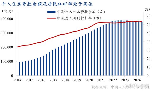 房產(chǎn)在居民資產(chǎn)中占比較高,約占家庭總資產(chǎn)的三分之二,房價下行必然導致居民資產(chǎn)縮水,然而房貸償還壓力依然較大。截至2024年二季度,居民個人住房貸款余額仍有37.8萬億元,杠桿率徘徊在63.5%的高位。居民收入優(yōu)先償債,可支配收入減少,消費自然下滑。