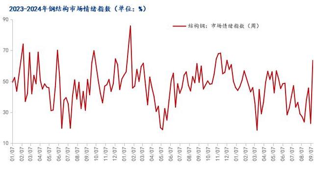 圖4:2023-2024年鋼結(jié)構(gòu)市場(chǎng)情緒走勢(shì)圖 數(shù)據(jù)來源:鋼聯(lián)數(shù)據(jù)