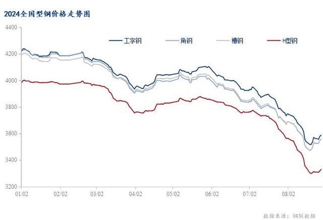 圖1:2023-2024年全國型鋼價(jià)格走勢(shì)圖 數(shù)據(jù)來源:鋼聯(lián)數(shù)據(jù)